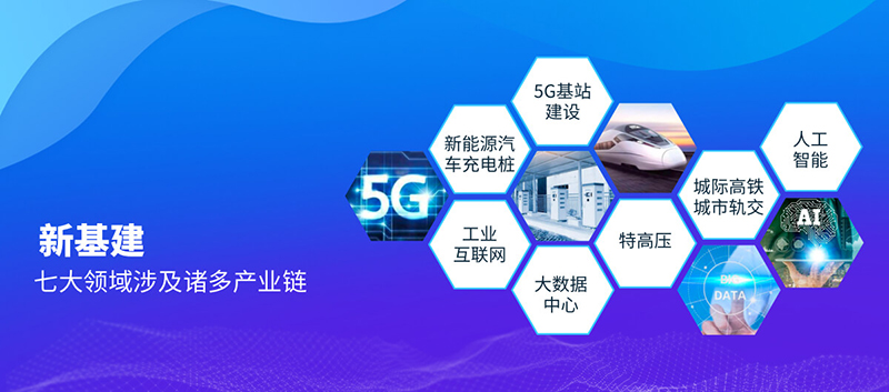 新型基础设施建设,就是近来“大火”的新基建,其主要包括5G基站建设、特高压、城际高速铁路和城市轨道交通、新能源汽车充电桩、大数据中心、人工智能、工业互联网七大领域,涉及诸多产业链,以技术创新为驱动,以信息网络为基础,面向高质量发展需要,提供数字转型、智能升级、融合创新等服务的基础设施体系 。