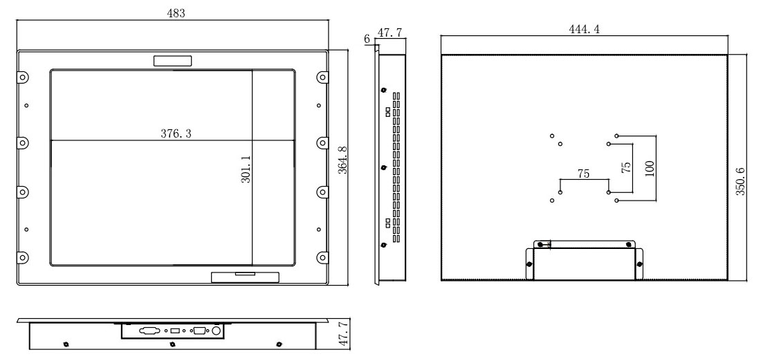全铝质面板,高温烤漆处理,显示器前面可达到IP65防护等级