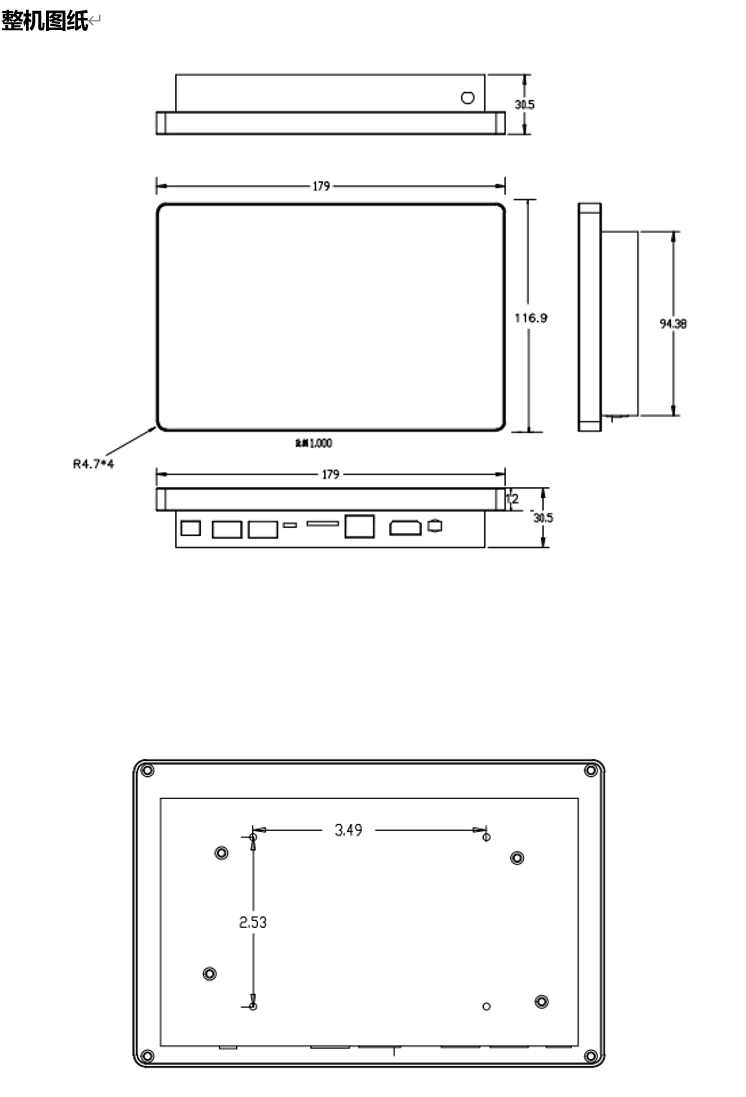显示尺寸 | 154.21mm*85.92mm | 整机尺寸 | 179mm*116.9mm*30.5mm |