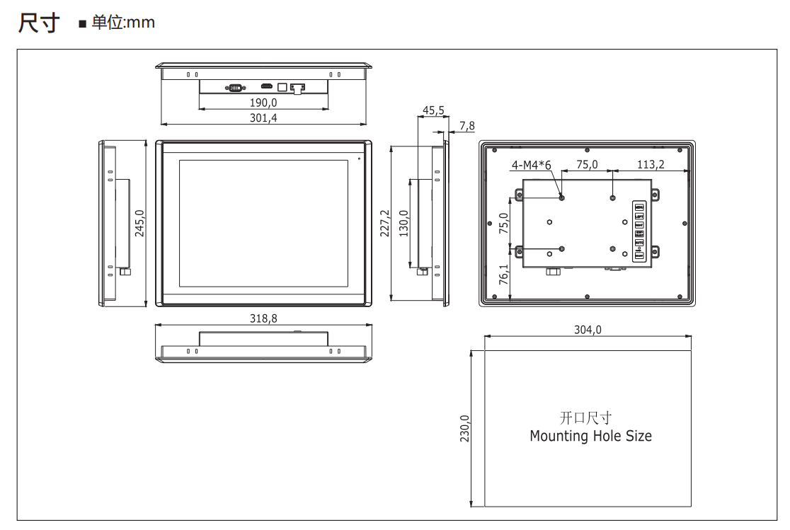 | 触摸屏尺寸 | 12.1"10点电容(或电阻)触摸 |