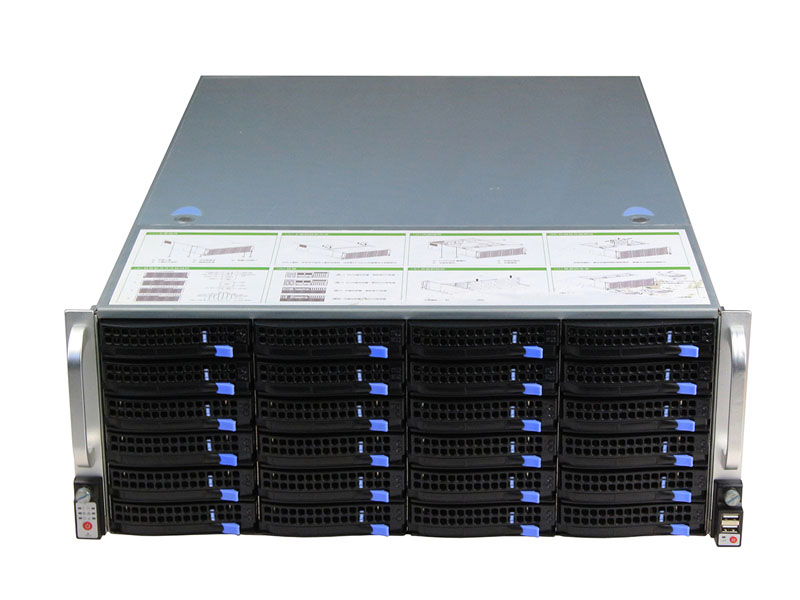 | HDD位 | 24个前置3.5" HDD(兼容 2.5" HDD/SSD),3个内置2.5" HDD/SSD;硬盘抽取盒采用防EMI设计,带导光柱,能指示硬盘工作状态;滑轨式设计,抽取顺畅 | |